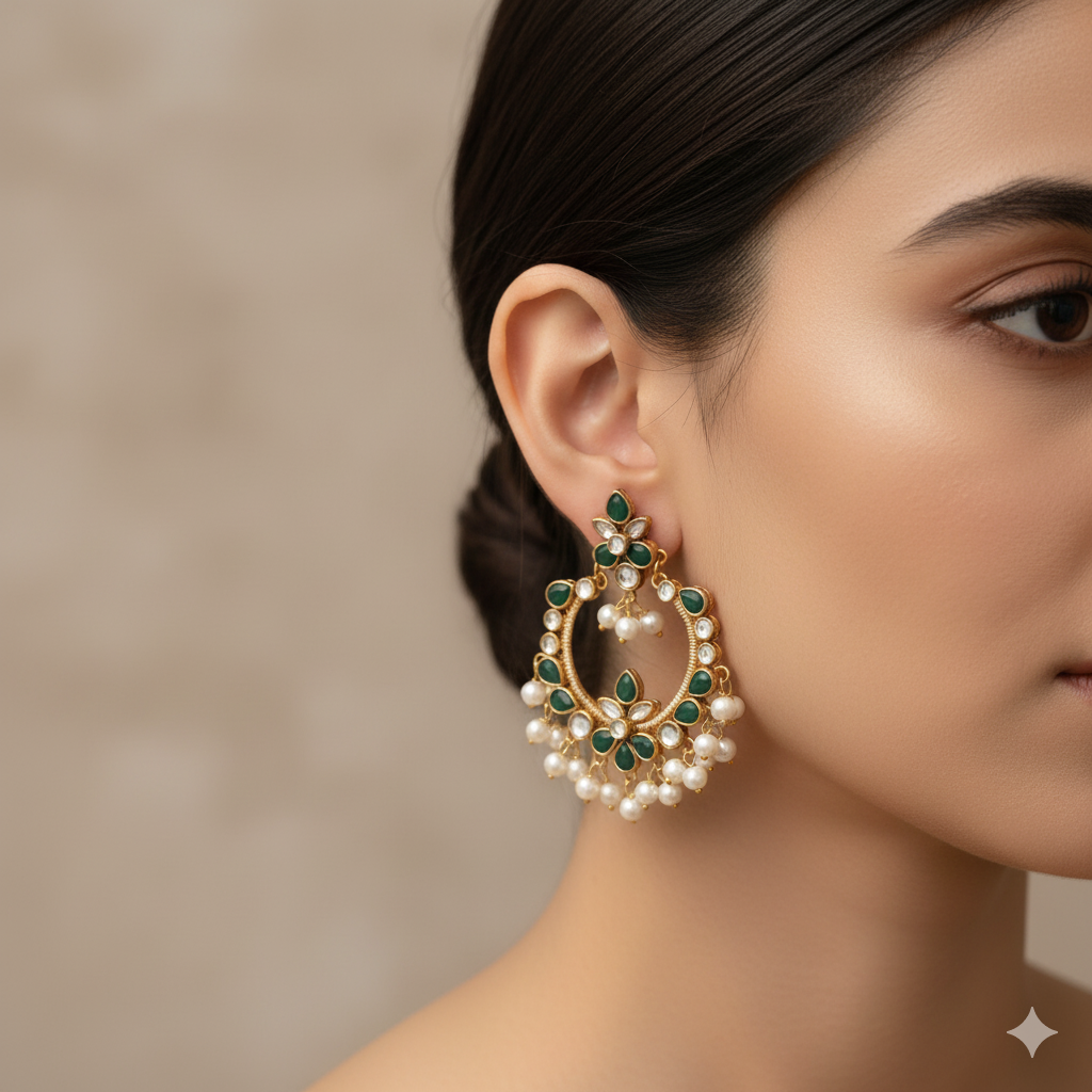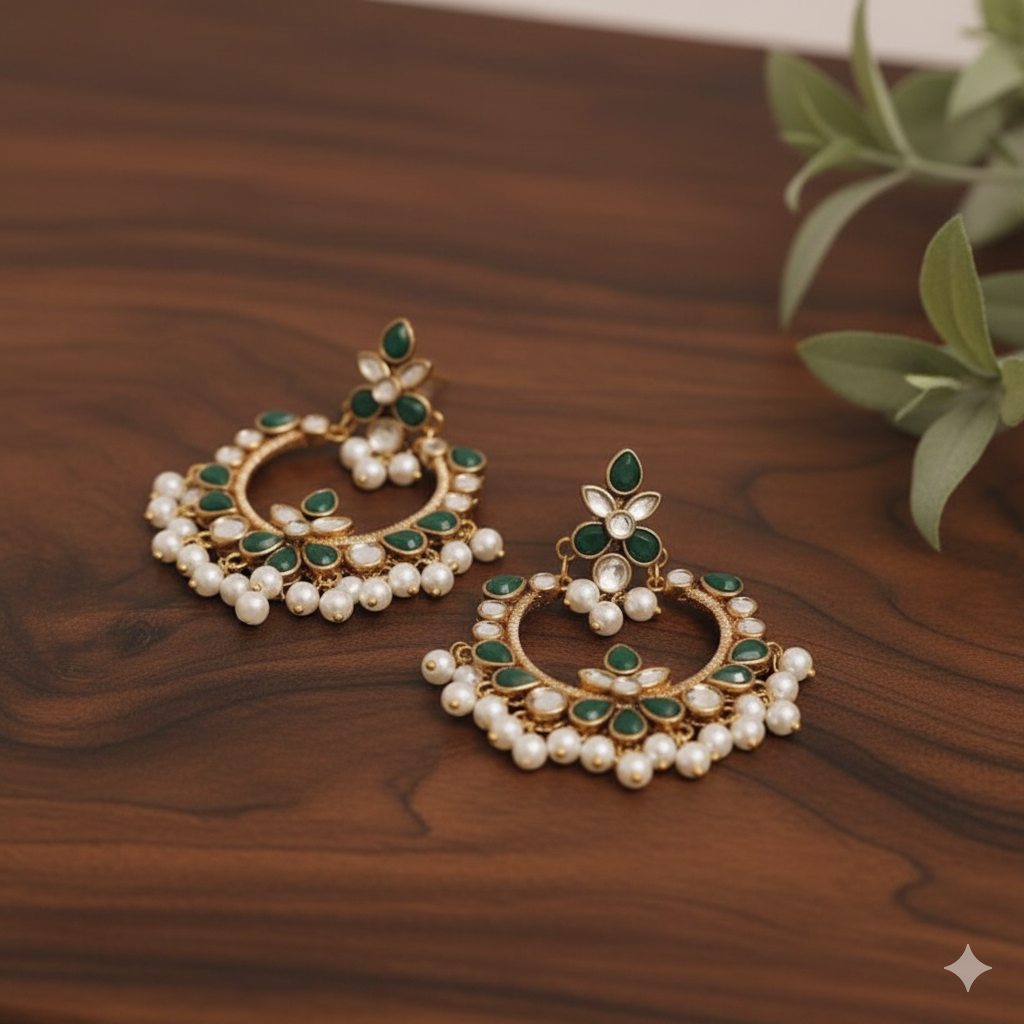 Striking and elegant, the Emerald Dew Earrings feature deep blue stones framed with artificial kundan, creating a regal look with timeless appeal.