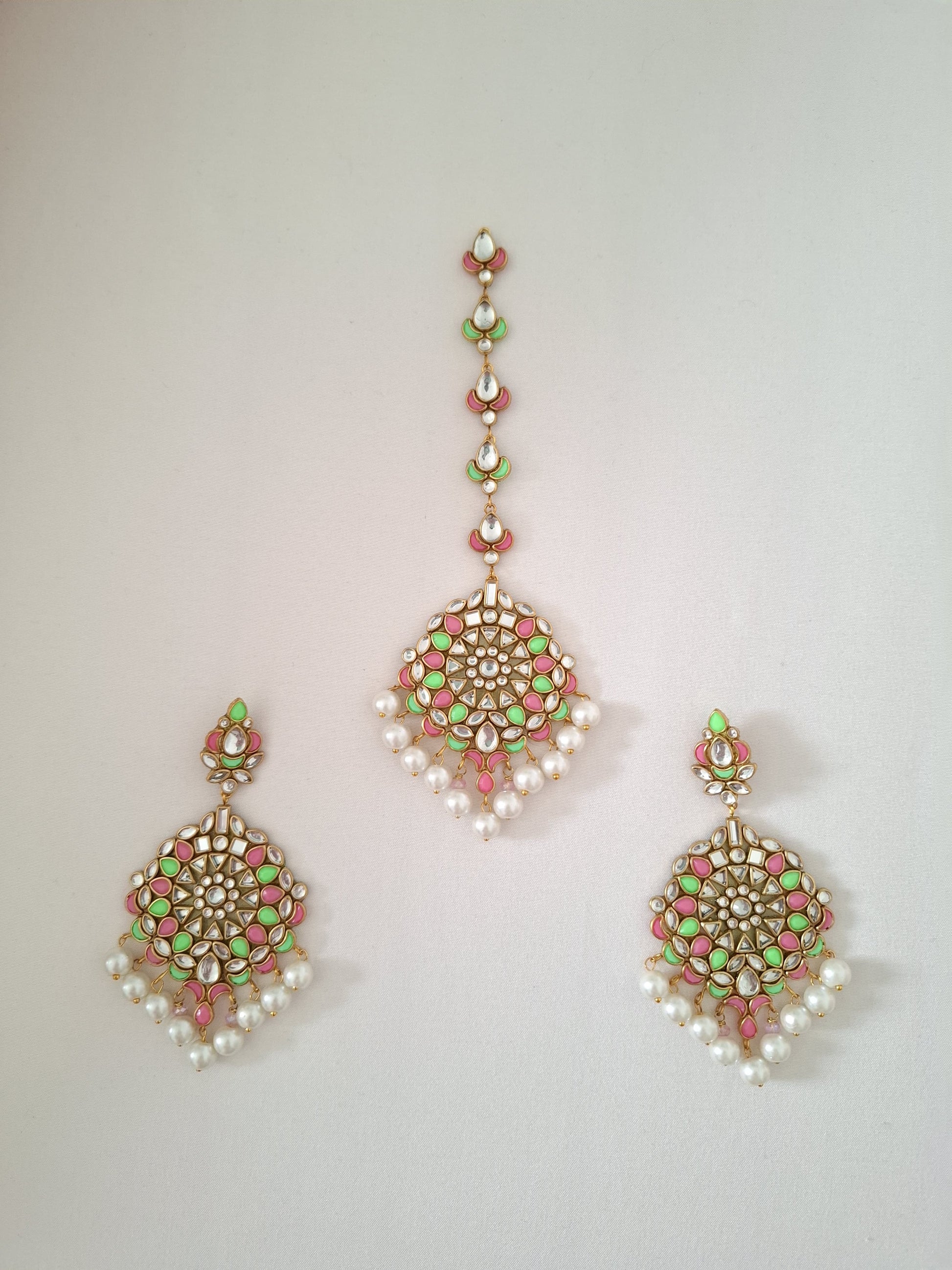 Gulabi noor earring & Tikka