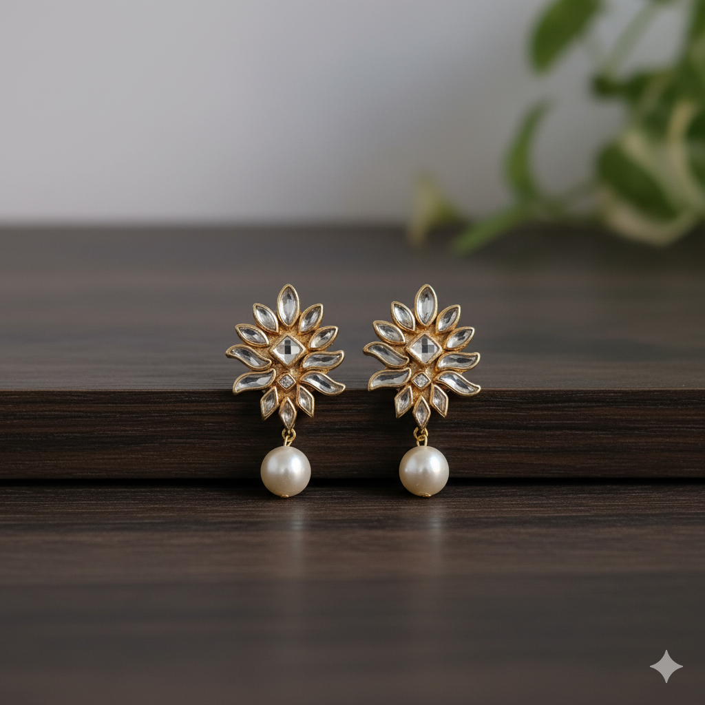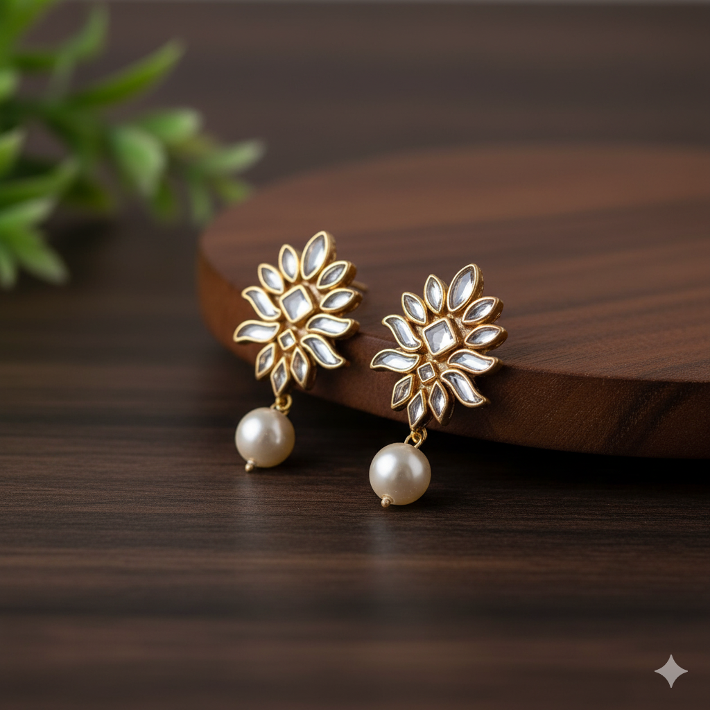 Classic and timeless, the Meera's Grace Earrings feature traditional kundan work with intricate detailing, creating an elegant design that reflects cultural richness and grace.
