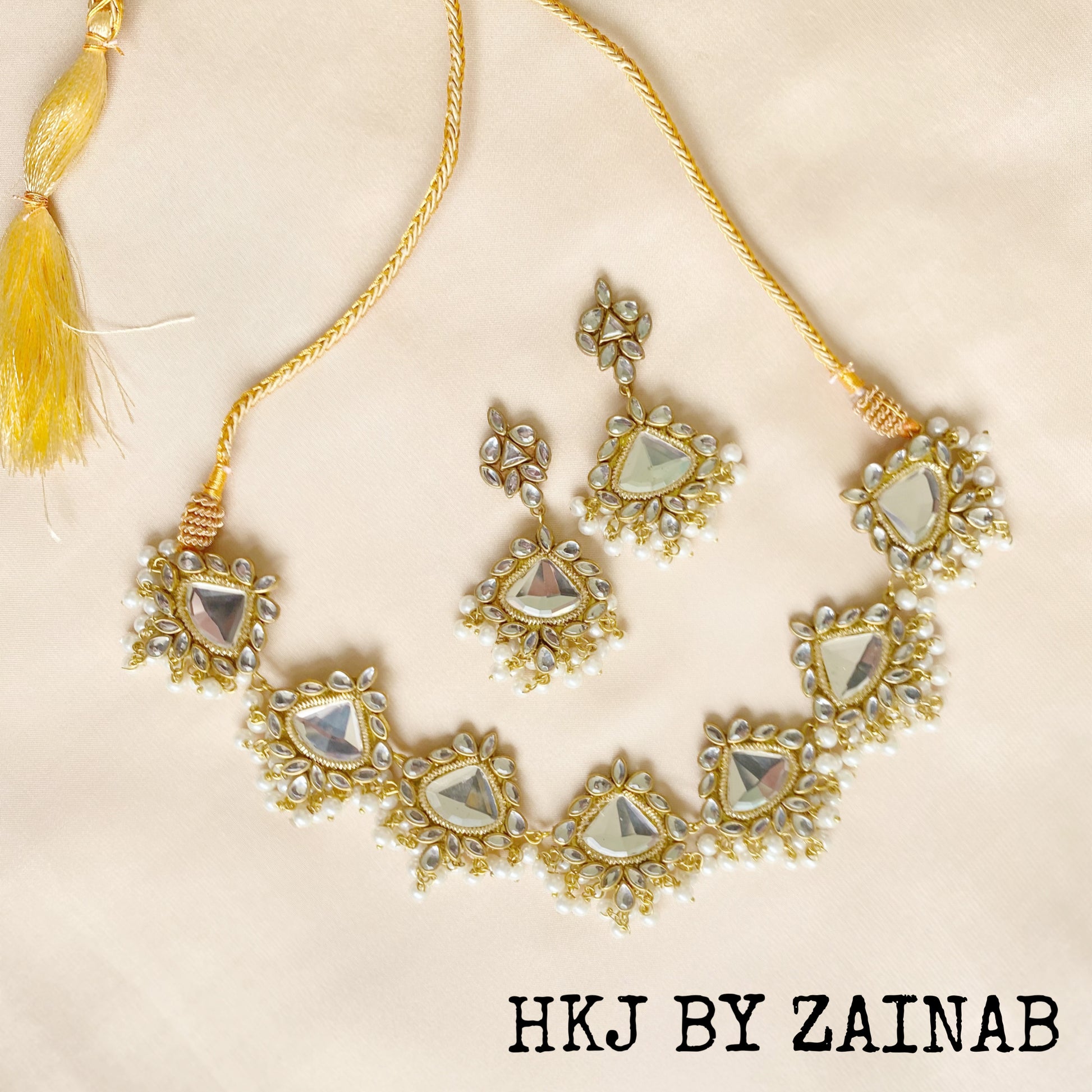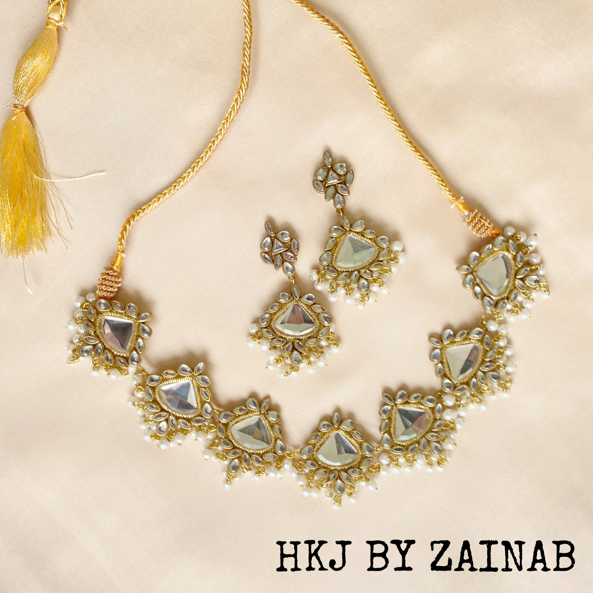 Timeless and traditional, the Mehreen Kundan Set features a finely crafted necklace with intricate kundan and jiapuri work, paired with matching earrings to complete its regal charm.