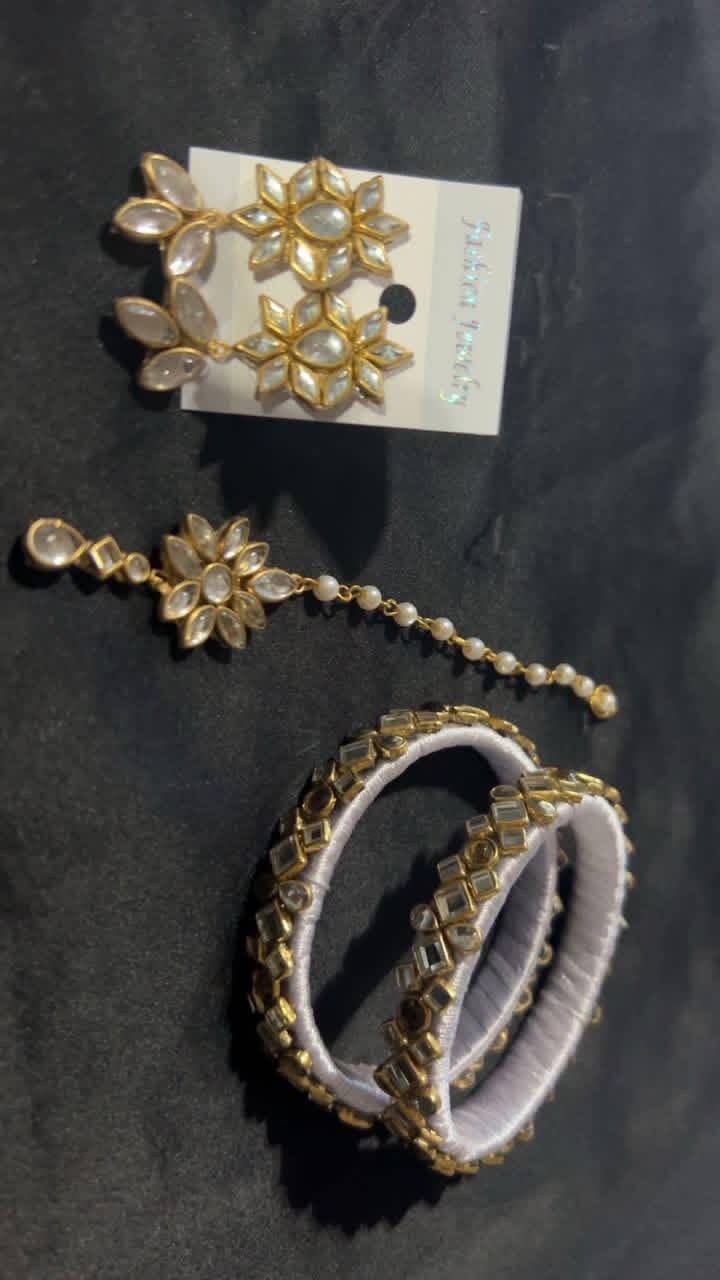 Bright and delicate, Minimal Kundan Earrings and tikka feature a graceful design adorned with fine artificial kundan detailing, reflecting a fresh and timeless elegance suitable for any occasion.