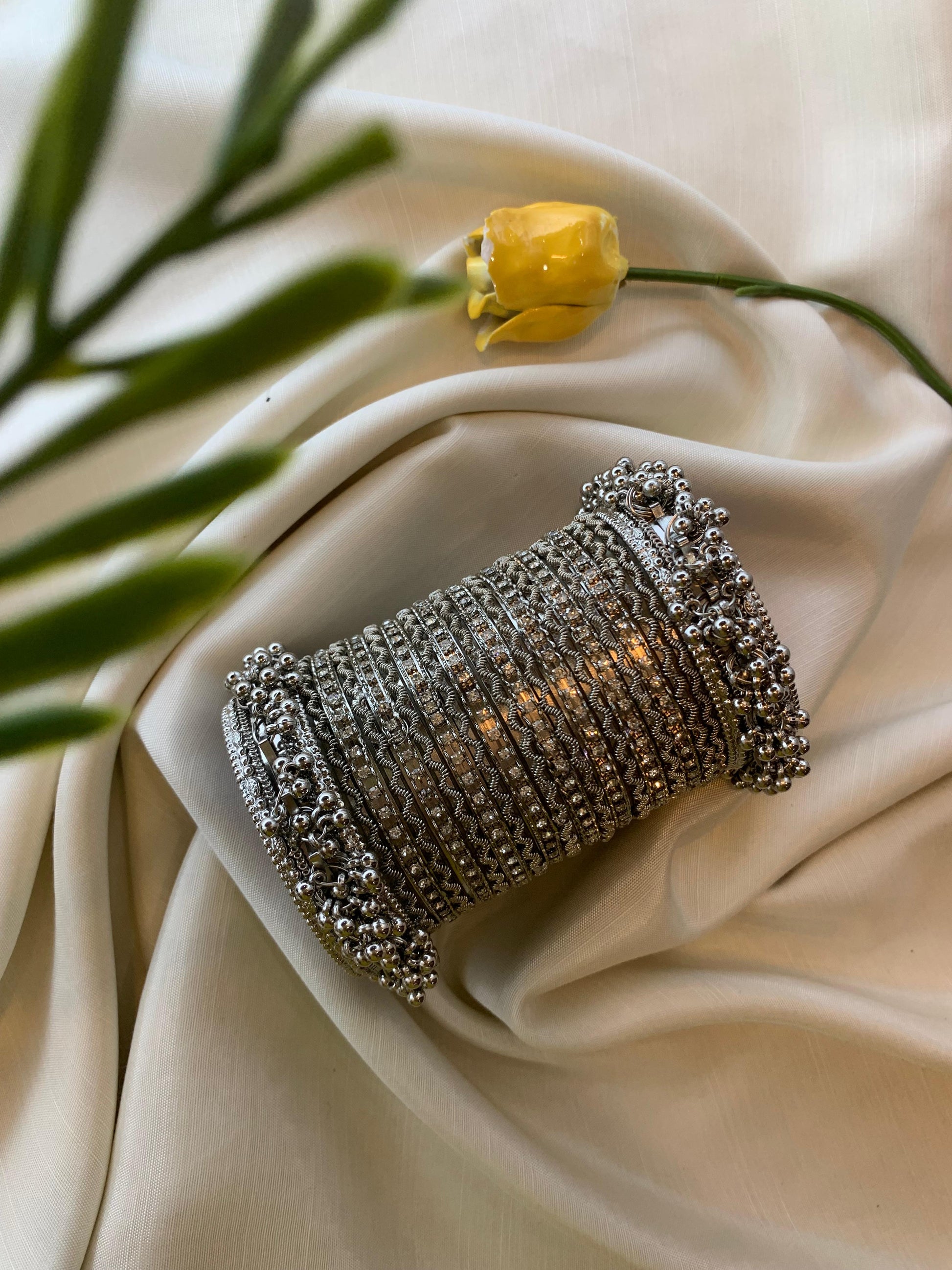 Sleek and minimal, The Naaz Silver Bangles Set features a polished metallic finish that adds understated elegance to any look.