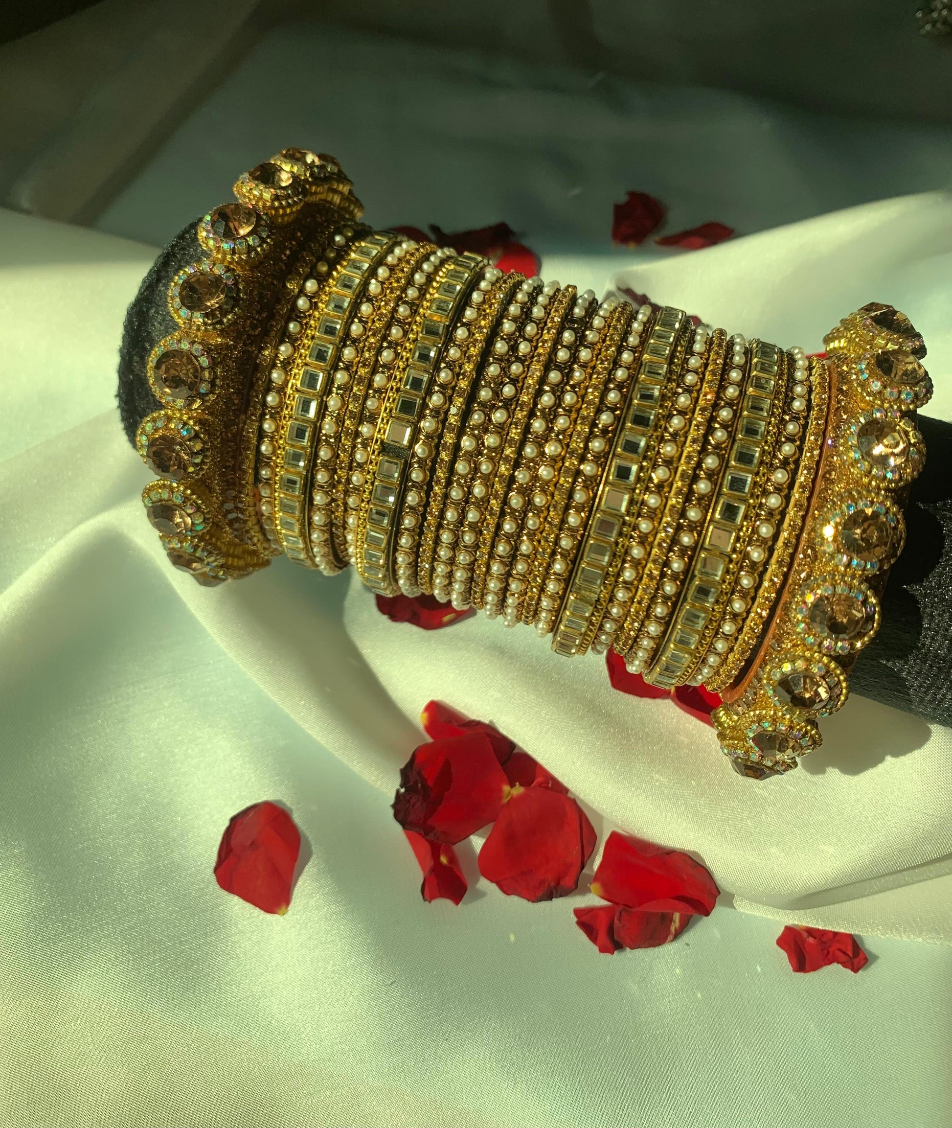Classic and elegant, The Rooh-e-Andaaz Bangles Set is crafted with intricate detailing indian Kara patterns, offering a timeless traditional look.